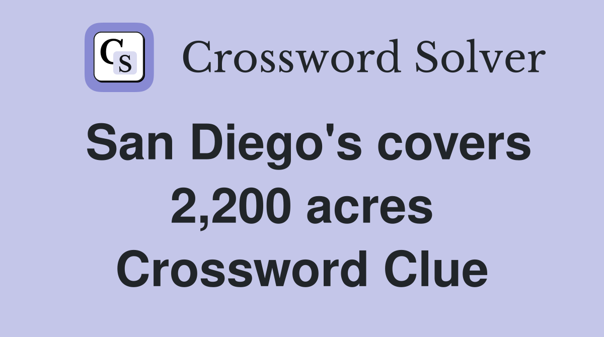 San Diego #39 s covers 2 200 acres Crossword Clue Answers Crossword Solver