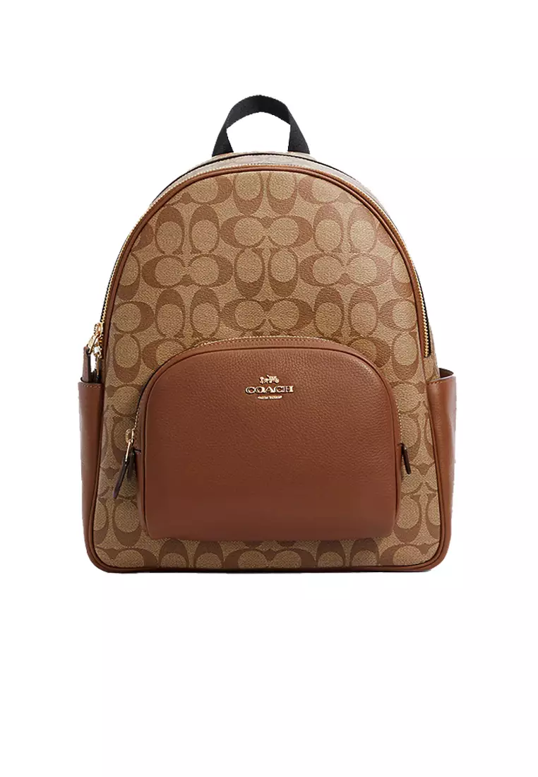 Buy Coach Court Backpack In Signature Canvas Khaki Saddle 5671 2025