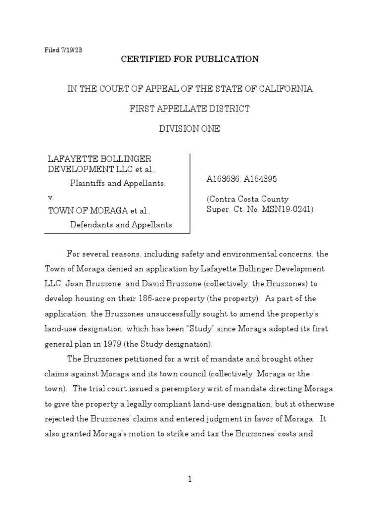 Lafayette Bollinger Development LLC v Town of Moraga No A163636