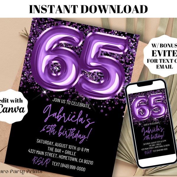 65th Birthday Invitation Templates Etsy