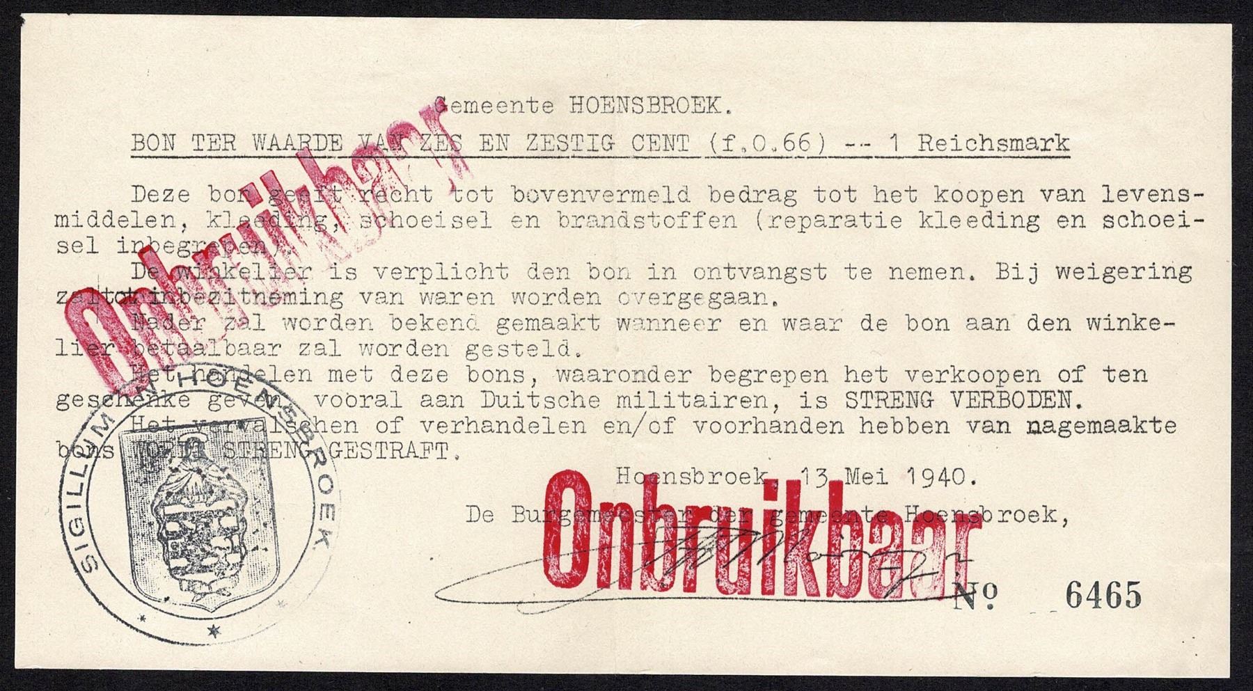 Netherlands 66 Cent 1940 Hoensbroek Limburg Noodgeld ZF/PR VF/EF