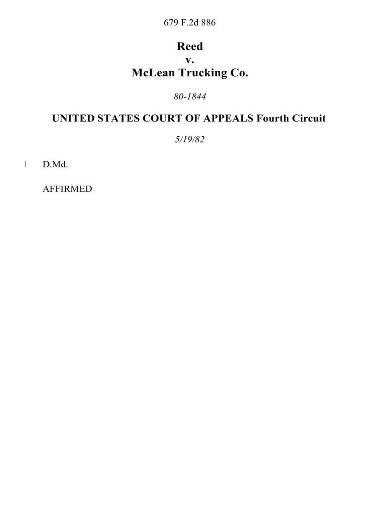 Reed v McLean Trucking Co 679 F 2d 886 4th Cir (1982) PDF
