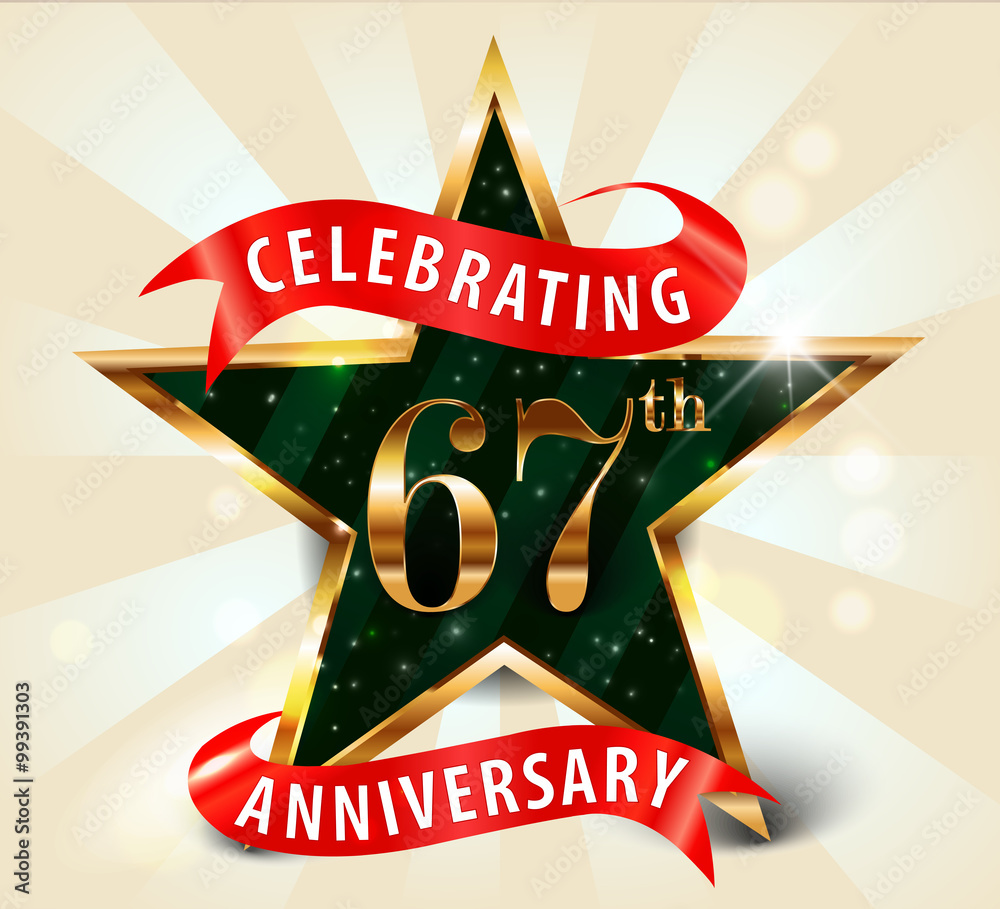 67 year anniversary celebration golden star ribbon celebrating 67th