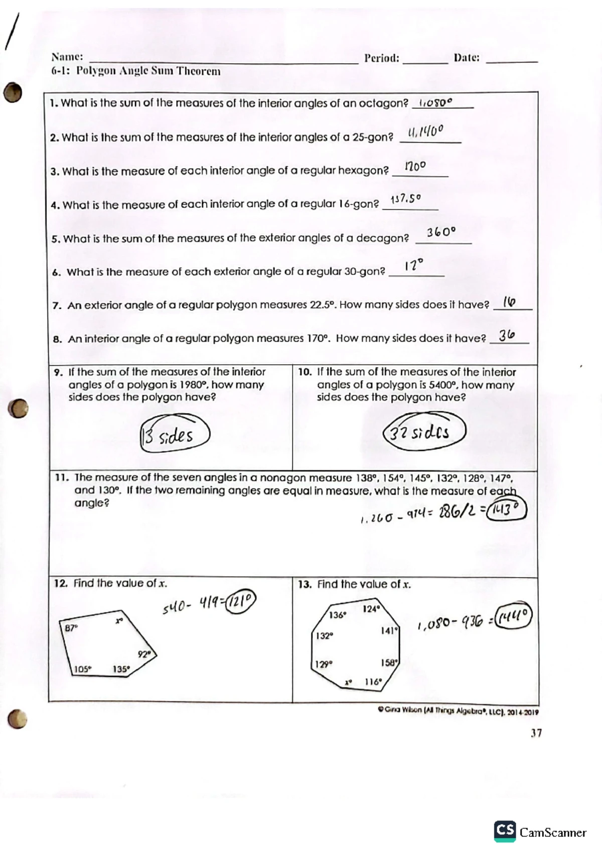 Mr Suominen #39 s Math Homepage: Geometry Practice Final Answers