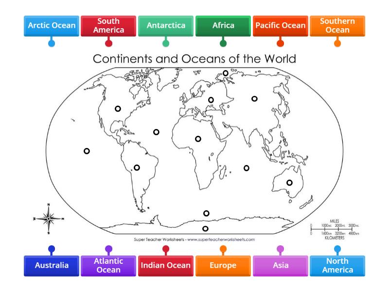 Continents Oceans Labelled diagram