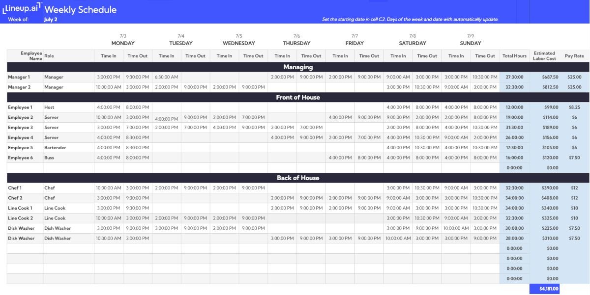 How to Make a Restaurant Work Schedule (with Free Excel Template)