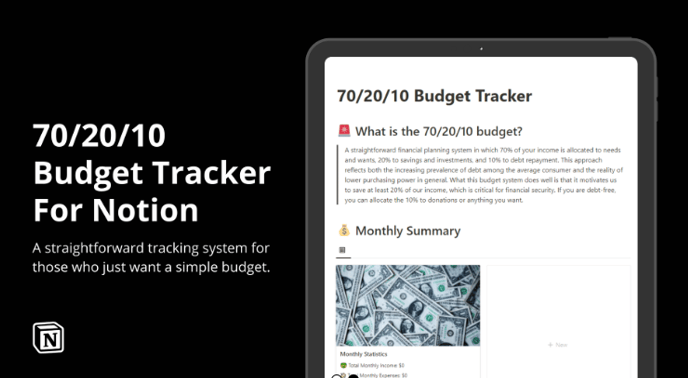 Notion 70/20/10 Budget Tracker: Great Financial Planning