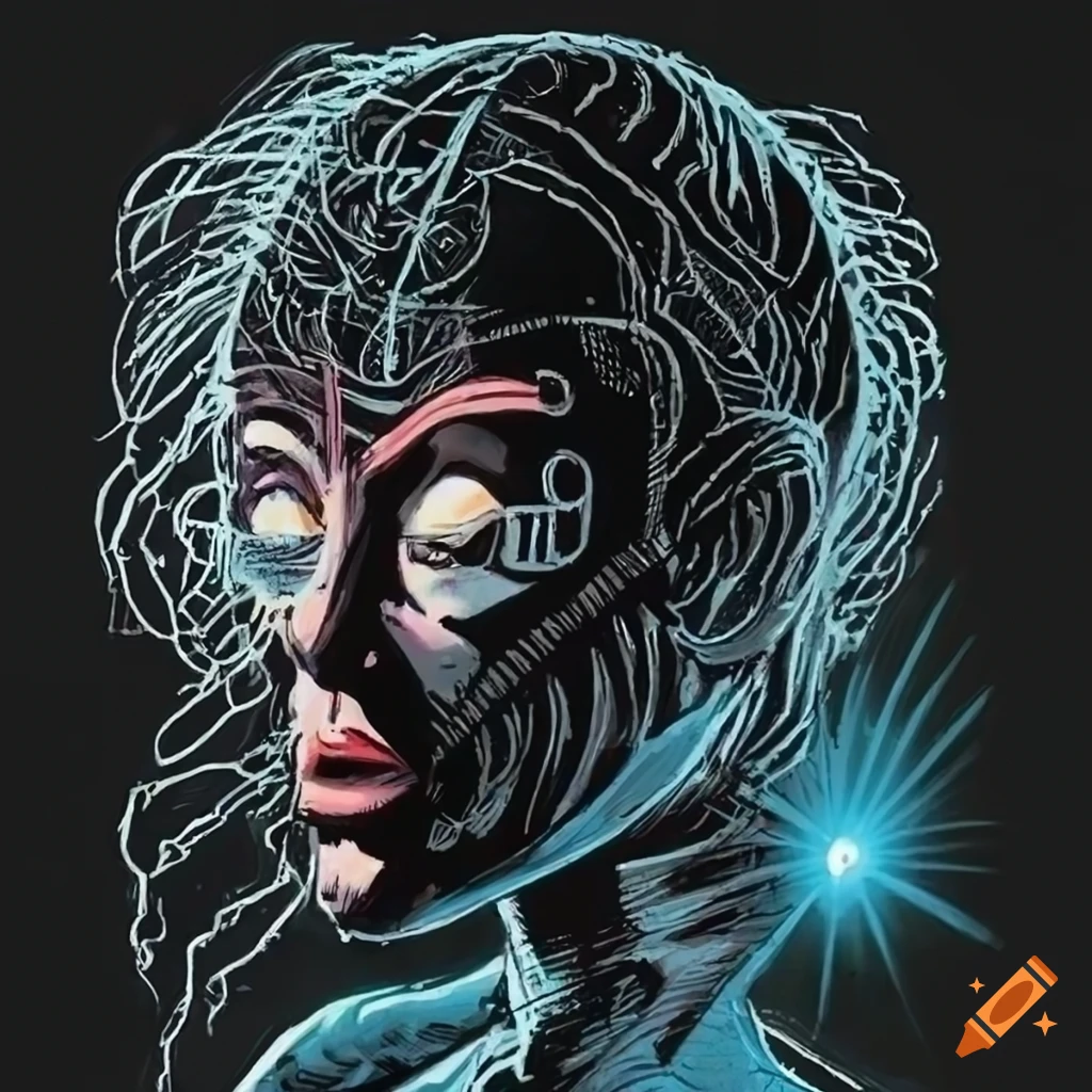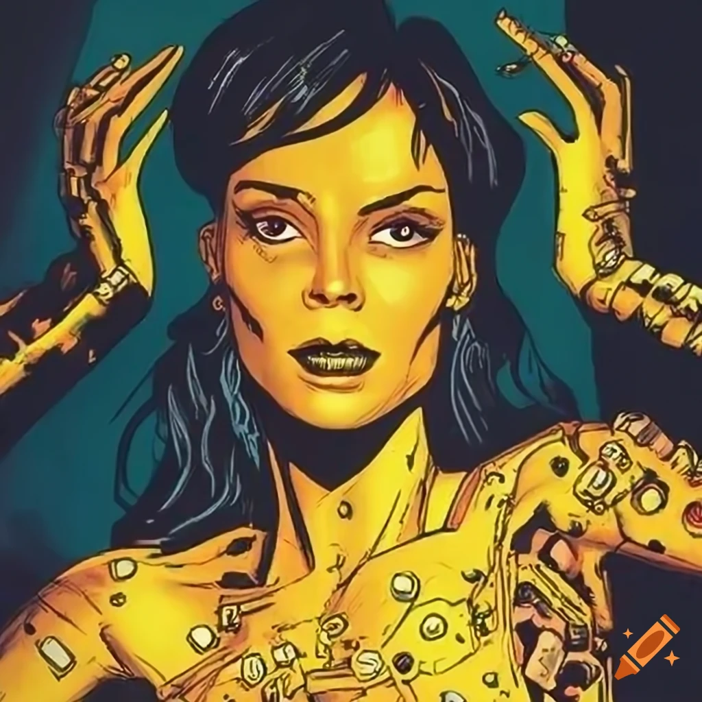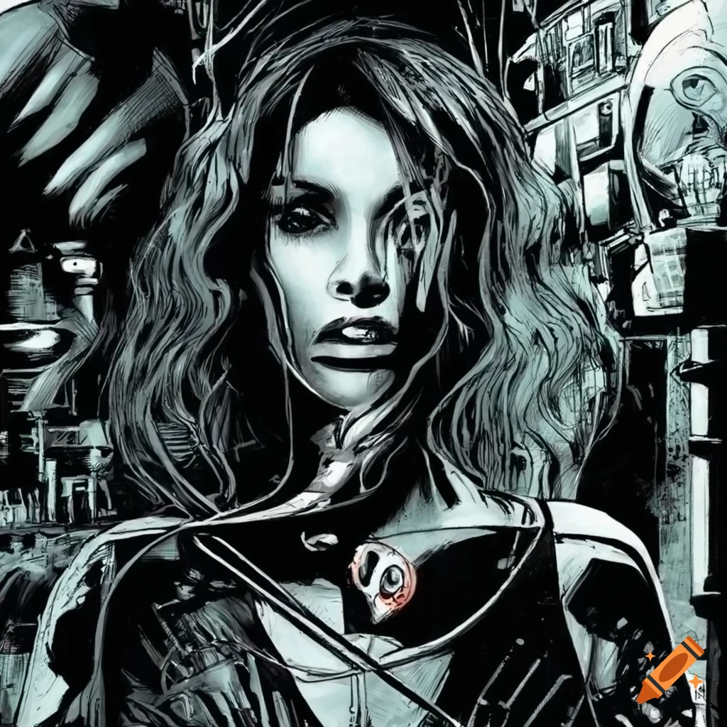Noir graphic novel with 70s sci fi bionic machine by D #39 Israeli on Craiyon