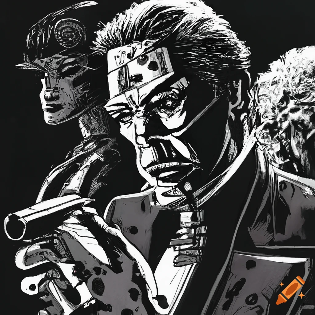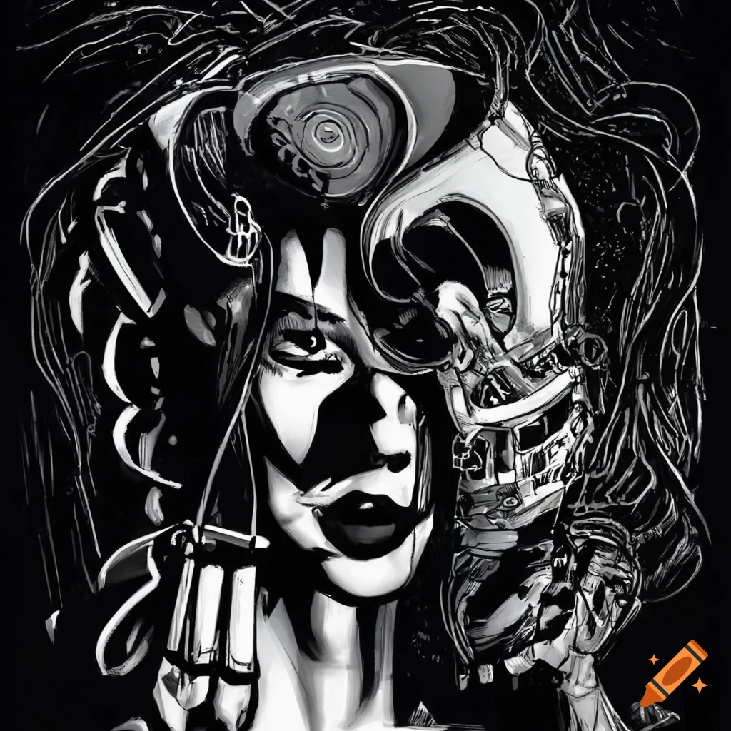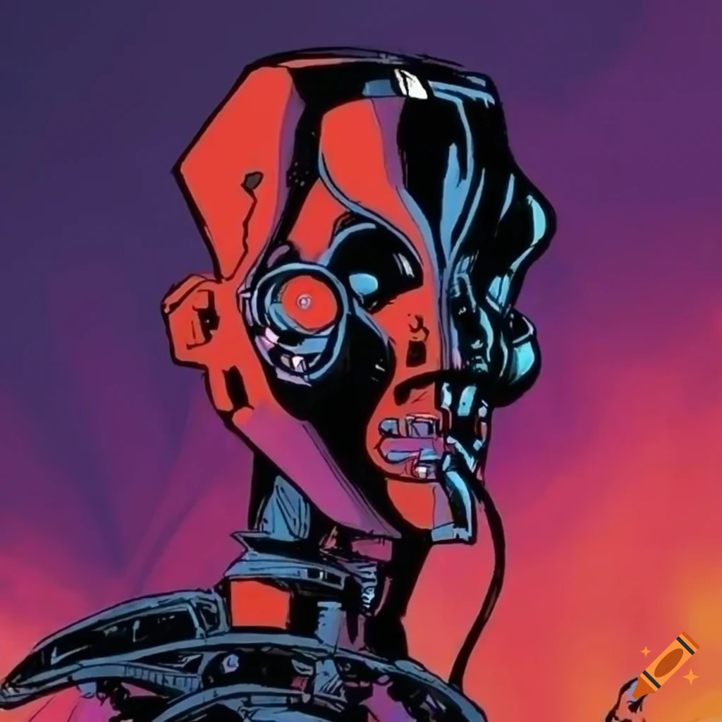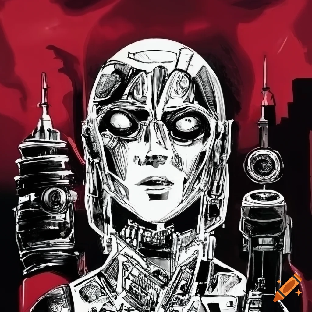 Noir graphic novel with 70s sci fi bionic machine by d #39 israeli on Craiyon