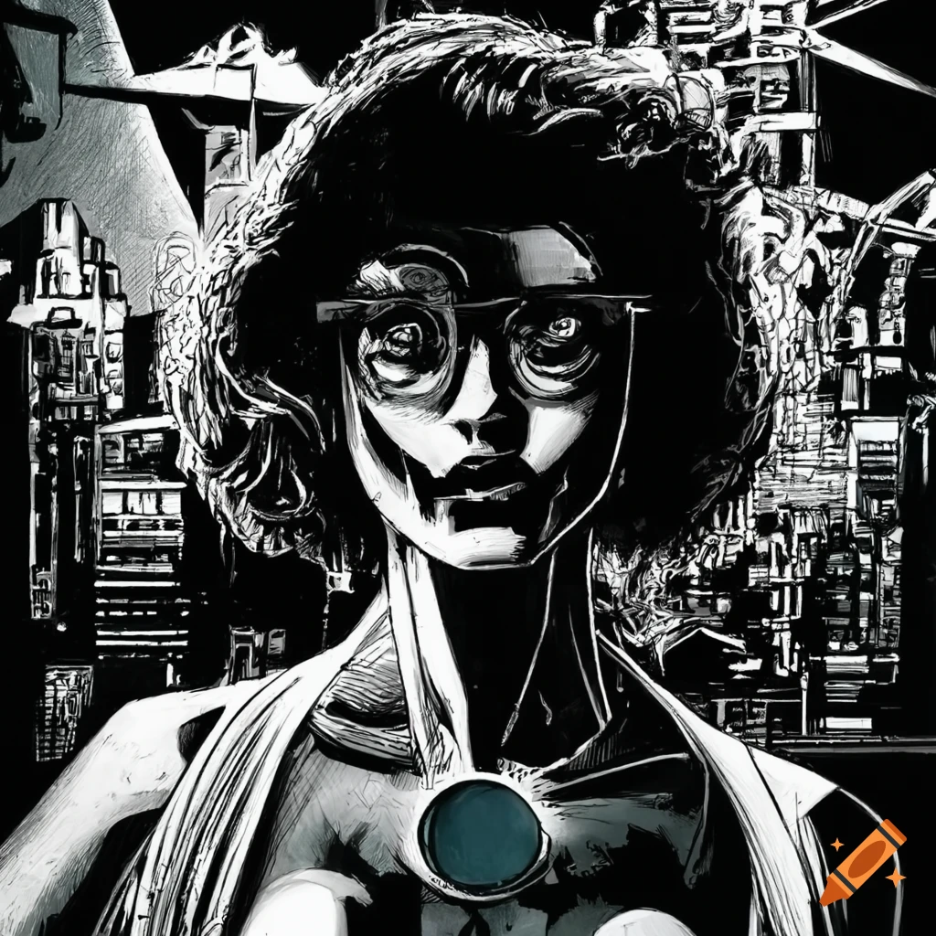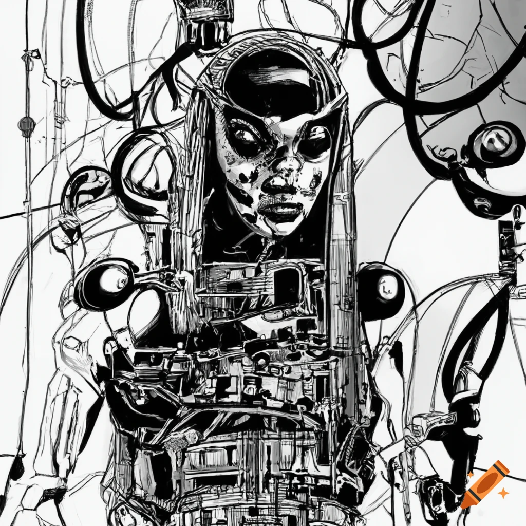 Noir graphic novel of 70s sci fi bionic machine by D #39 Israeli on Craiyon