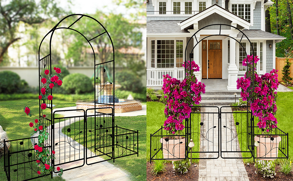 Amazon com : Metal Garden Arbor Arch with Gate and Plant Box 86 6 quot H