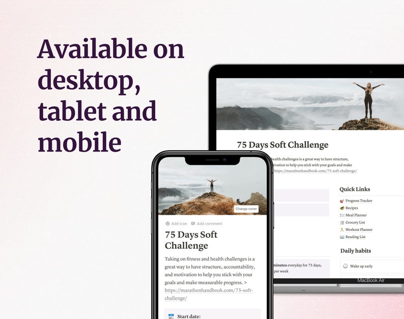 75 Days Soft Challenge Notion Template Aesthetic Digital Planner