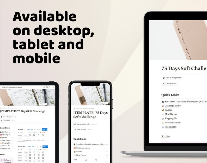 75 Days Soft Challenge Notion Template Aesthetic Digital Etsy UK