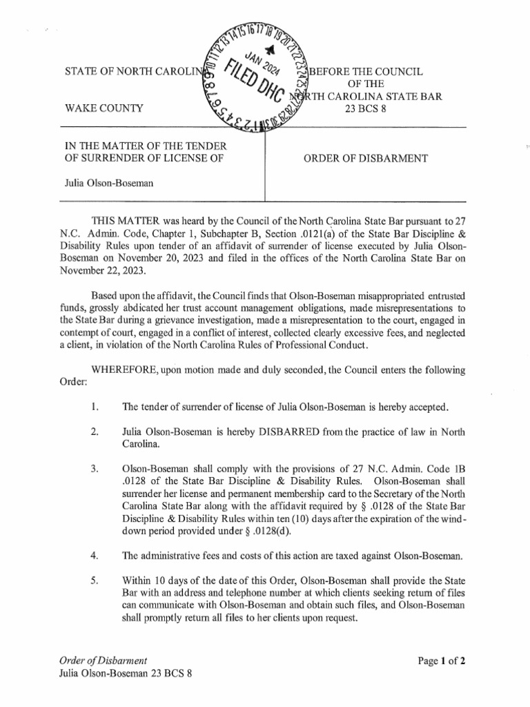 Olson Boseman Julia Disbarment Order Download Free PDF Affidavit