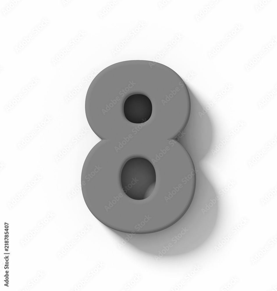 number 8 3D medium gray isolated on white with shadow orthogonal