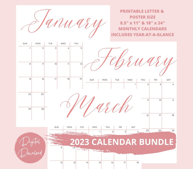 2023 Calendar Bundle Monthly Yearly Calendars Pink Theme Etsy
