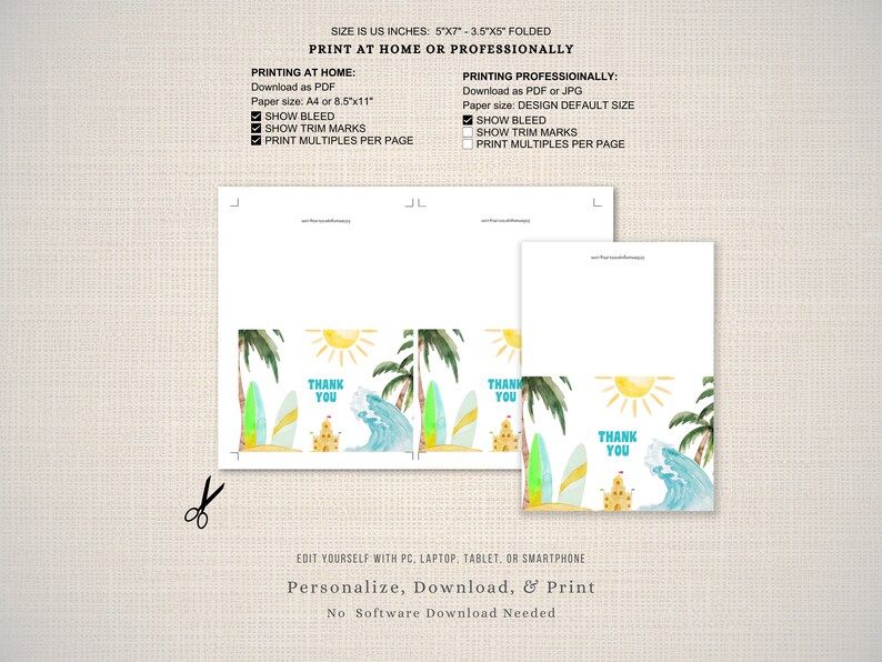 Beach Party Thank You Card Surf Thank You Thank You Card Template