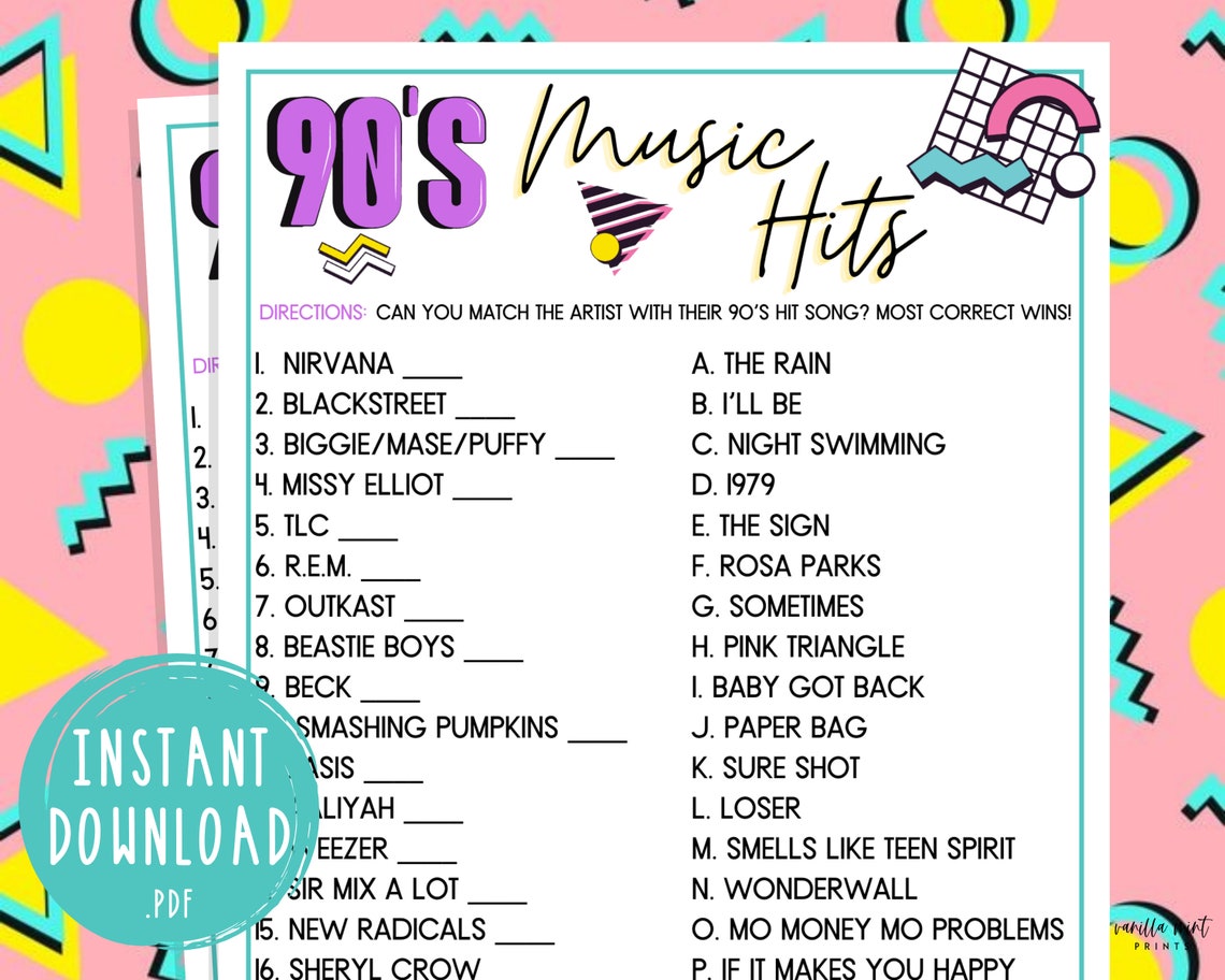 90s Music Trivia Game 90s Theme Party Game 90s Trivia Trivia Game