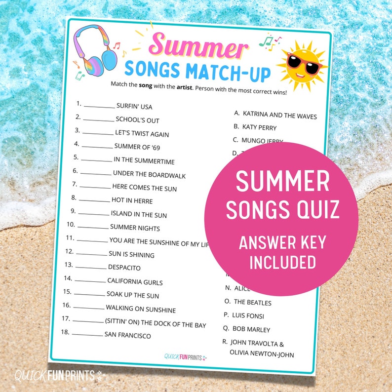 Summer Trivia Quiz Game Printable Activity Pool Party Family Fun
