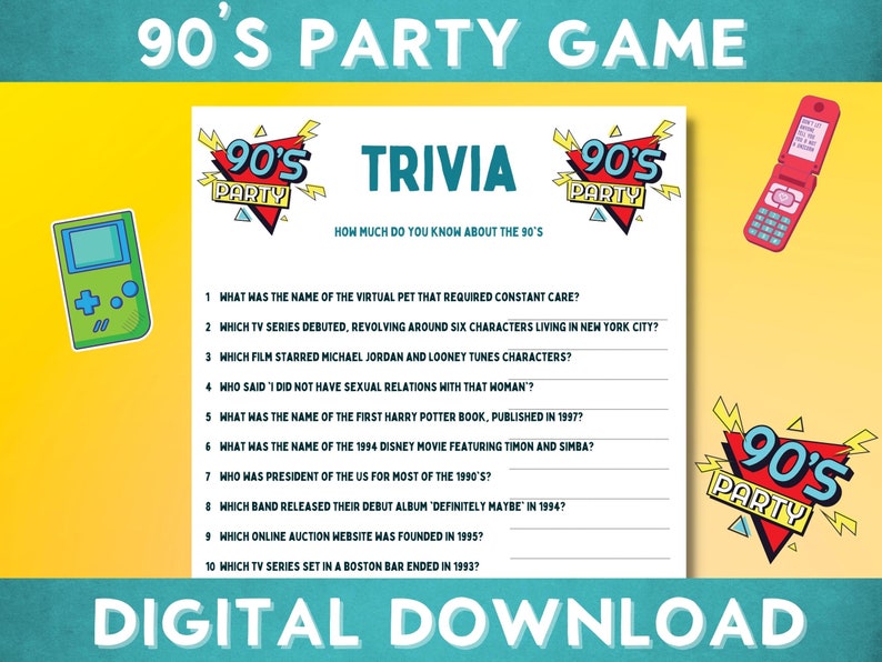 1990 #39 s Trivia 90s Trivia BUNDLE of 10 Games Trivia Etsy