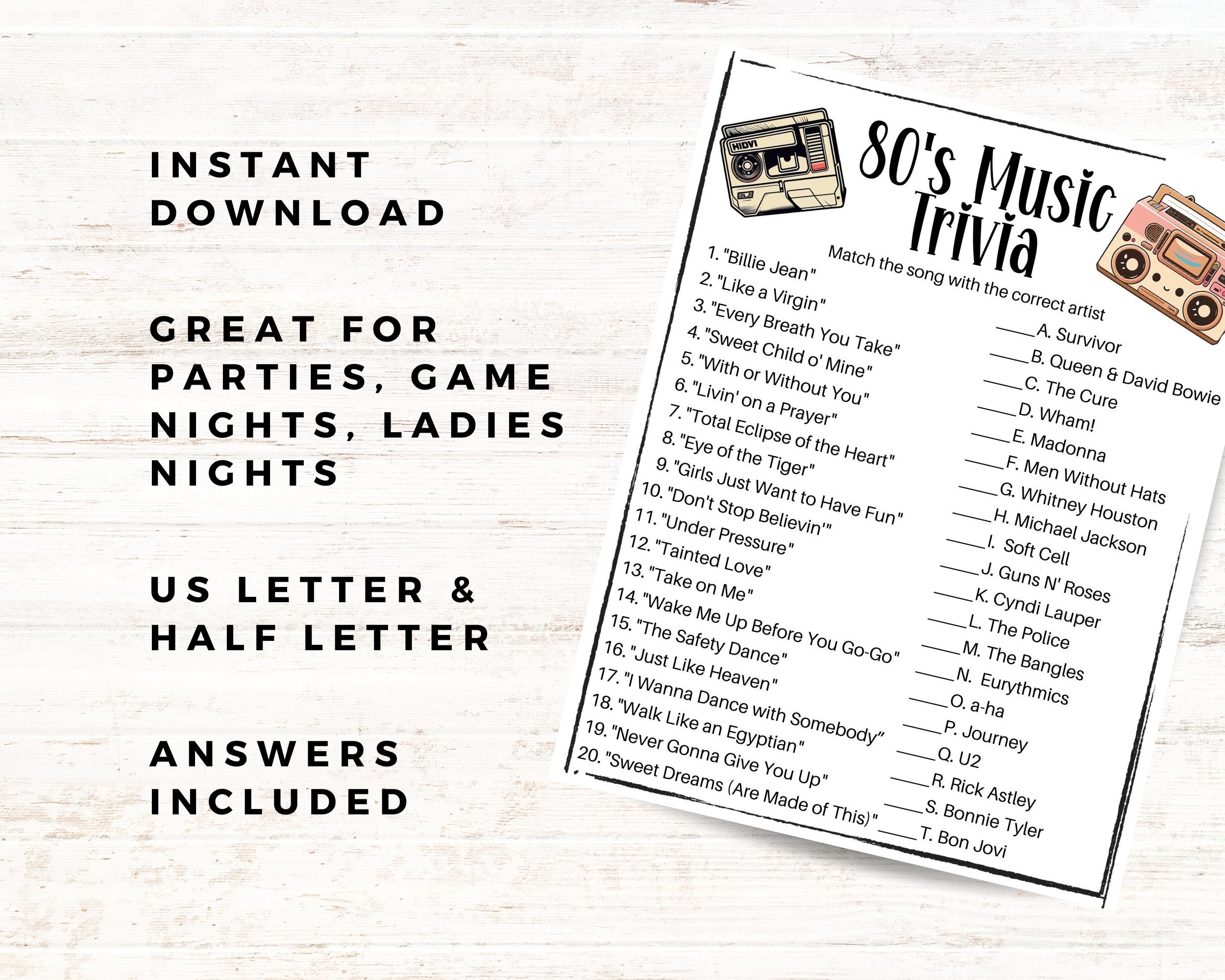 80s Music Trivia Game Pub Trivia 1980 #39 s TriviaParty Games