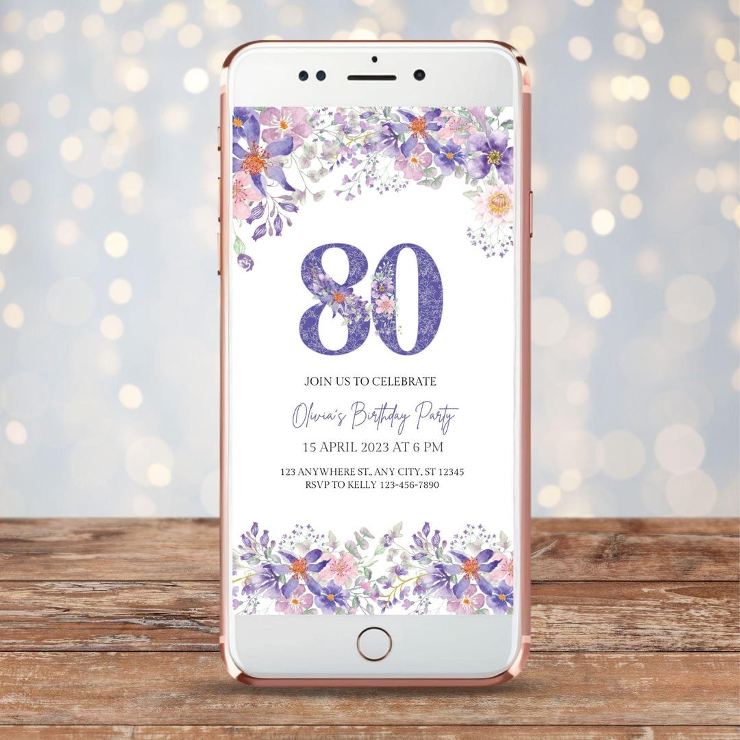 80th Birthday Invitation Template Editable Digital Milestone Party