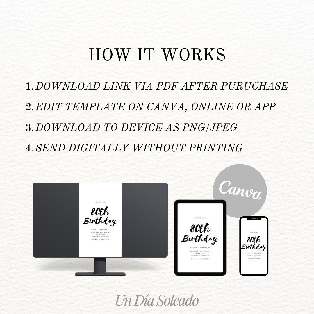 Downloadable 80th Birthday Invitation Template Instant Etsy