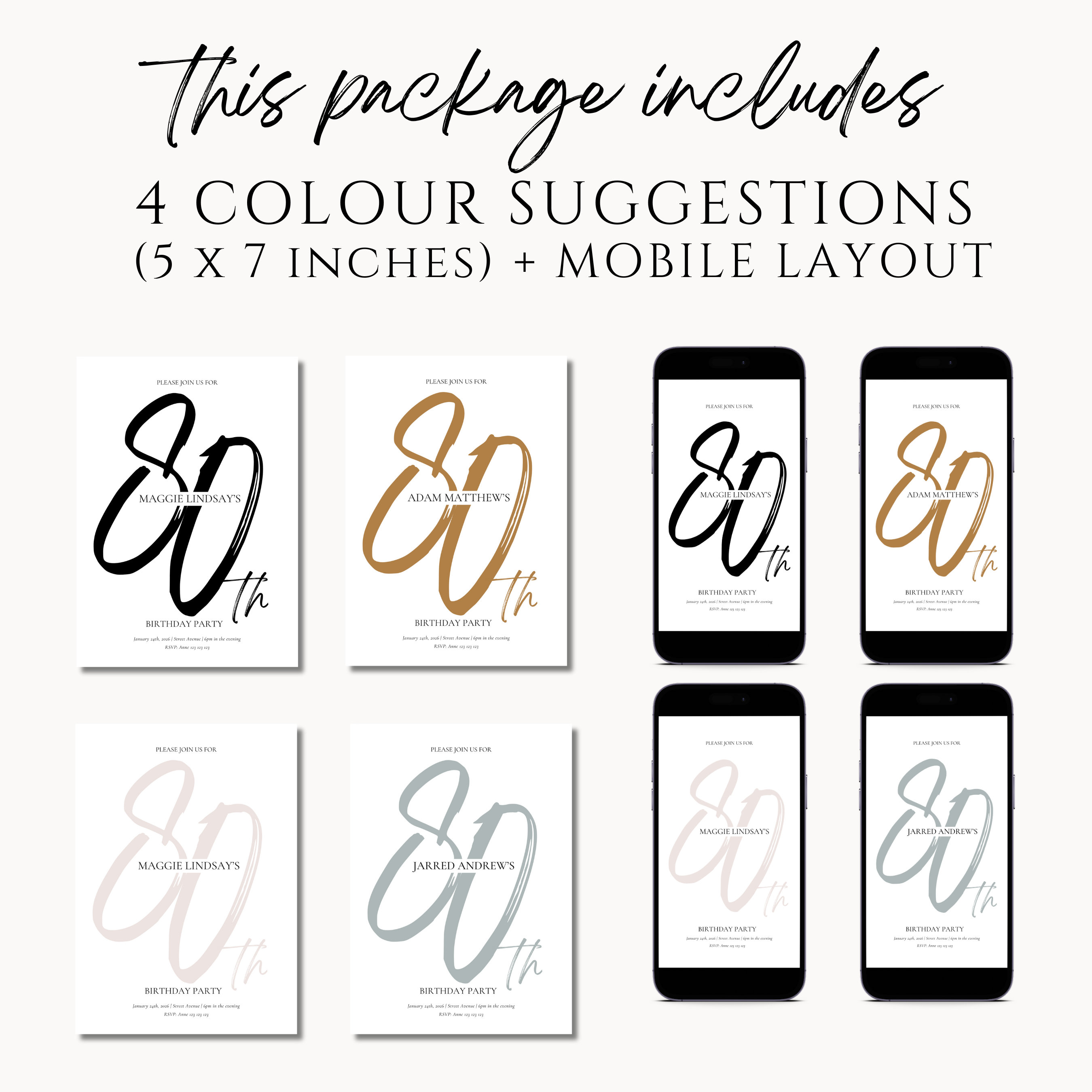 80th Birthday Invitation Template Modern Printable Birthday Invite