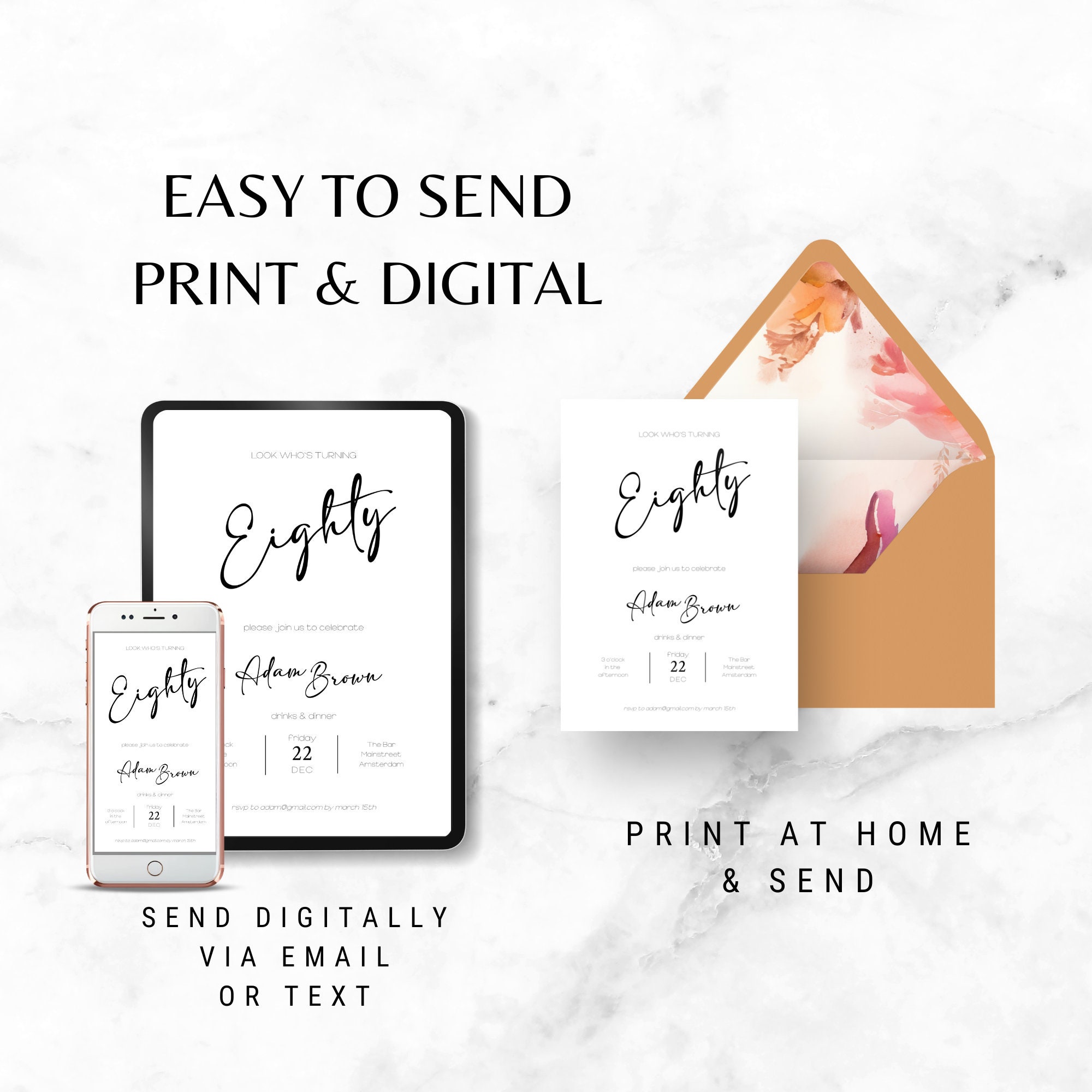 Downloadable 80th Birthday Invitation Template 80th Birthday Etsy