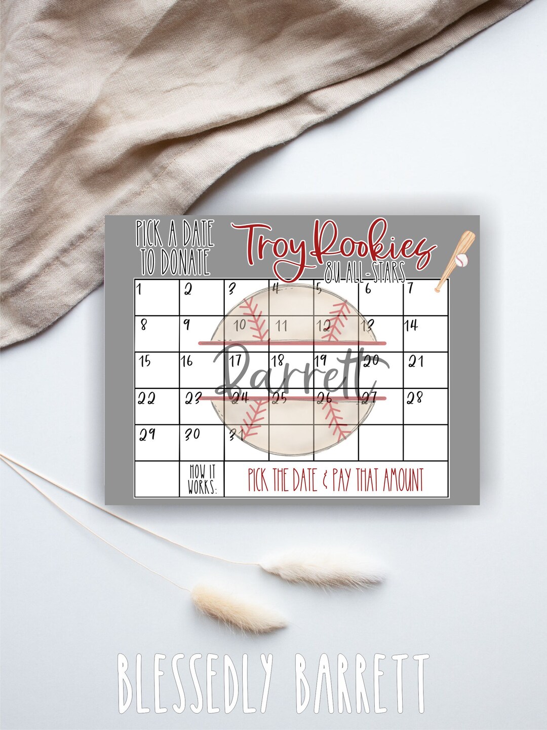Baseball Fundraiser All stars Calendar Fundraising Calendar