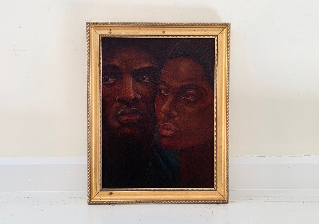 Vintage Portrait Painting Original Gilt Framed Moody Dramatic Oil on