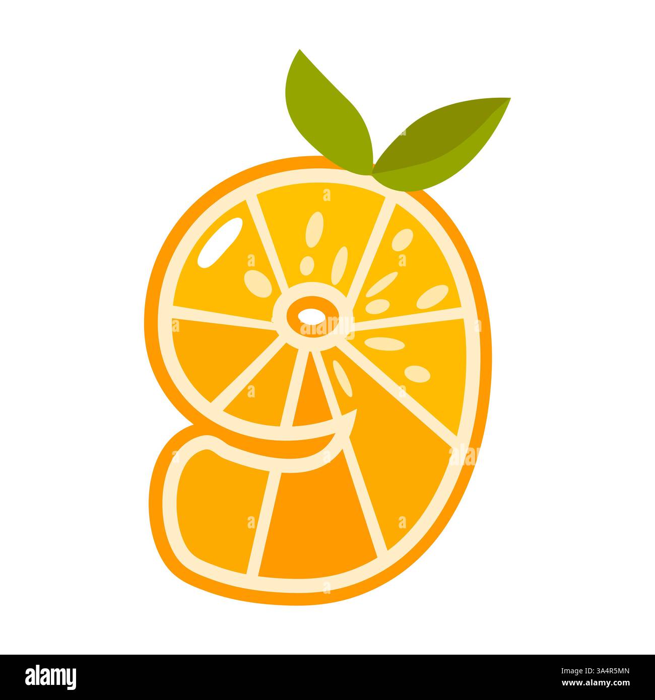 Orange fruit number Nine Orange in the shape of number 9 Vector