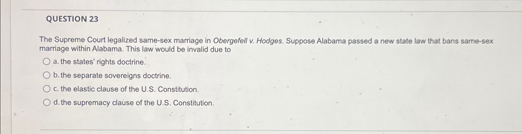 Solved QUESTION 23The Supreme Court legalized sameChegg com