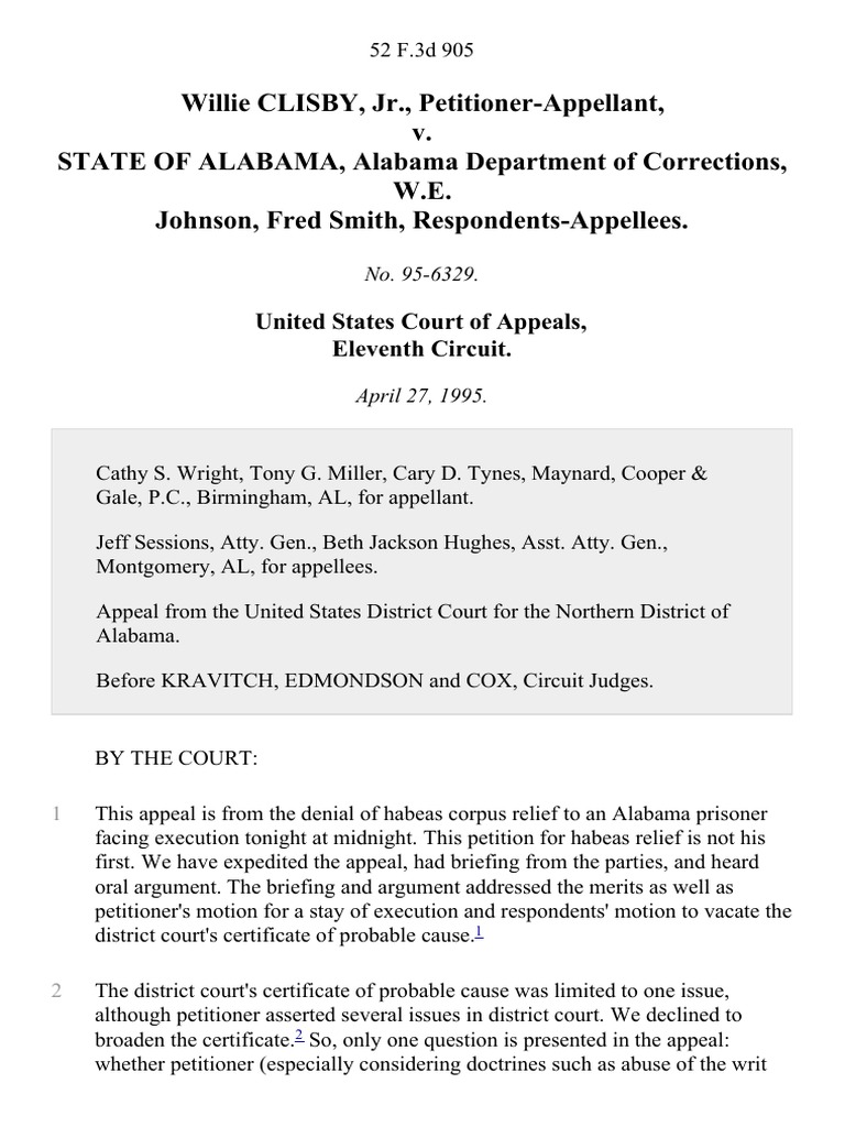 Clisby v State of Alabama 52 F 3d 905 11th Cir (1995) Download