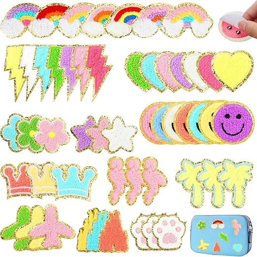 Amazon com: Cindeer 52 Pcs Cute Chenille Embroidered Stick on Patches