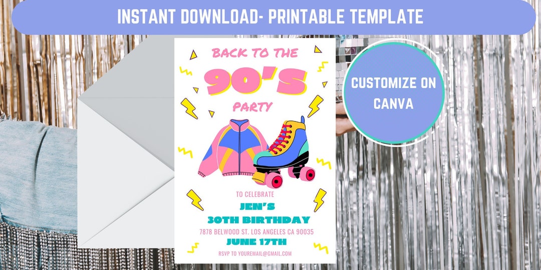 90 s Theme Party Invitation Personalized Customizable Etsy
