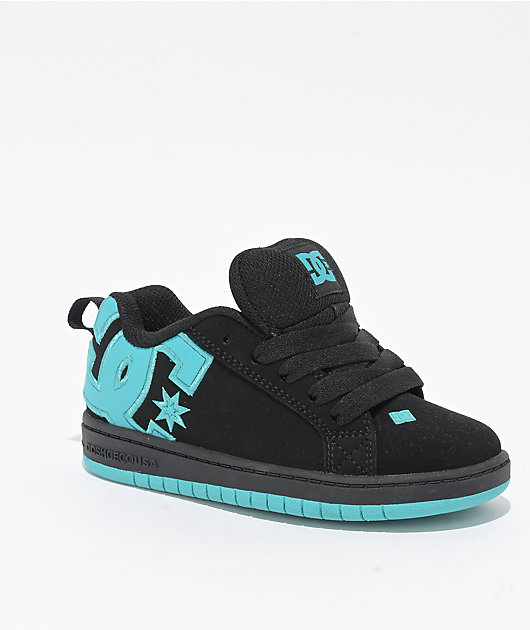 DC Kids Court Graffik Black Turquoise Skate Shoes Zumiez