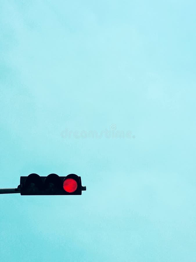 A Simple Low angle Shot of a Traffic Light Against a Clear Turquoise