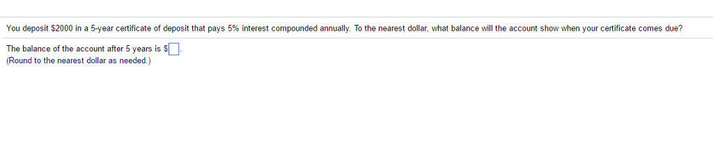 Solved You deposit $2000 in a 5 year certificate of deposit Chegg com