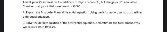 Solved A bank pays 2% interest on its certificate of deposit Chegg com