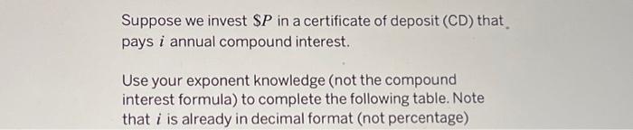 Solved Suppose we invest $P in a certificate of deposit (CD) Chegg com