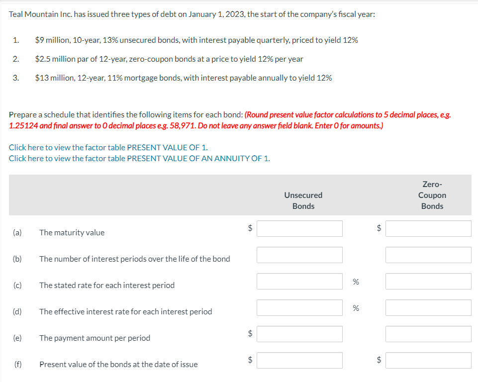 Solved : Teal Mountain Inc has issued three types of deb