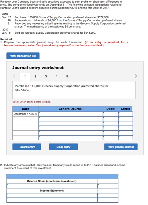 Solved Rantzow Lear Company buys and sells securities Chegg com