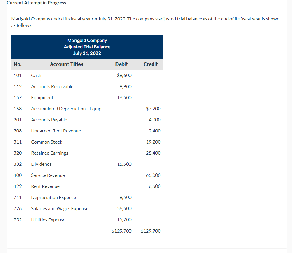 Solved : marigold company ended its fiscal year on july 31