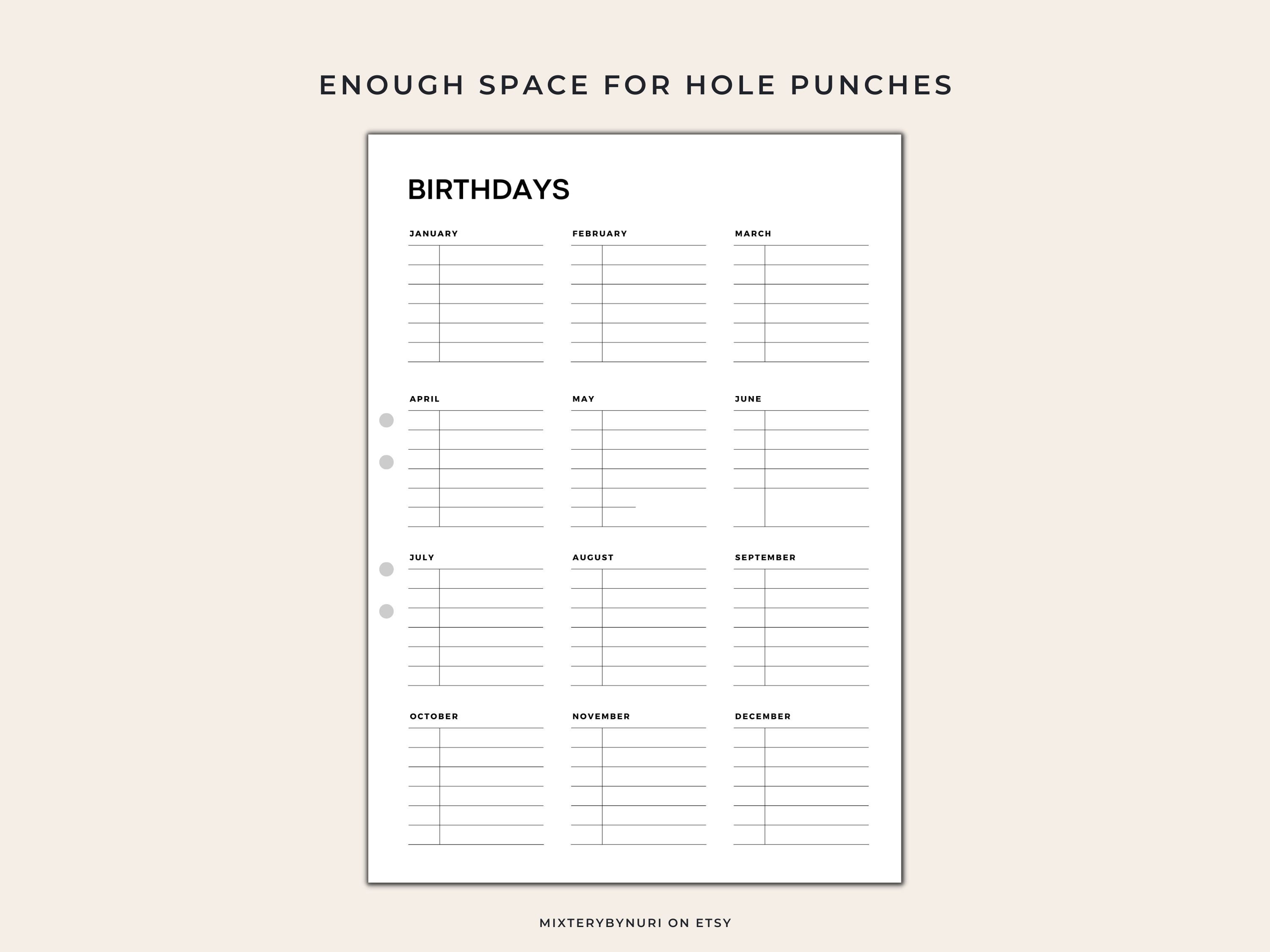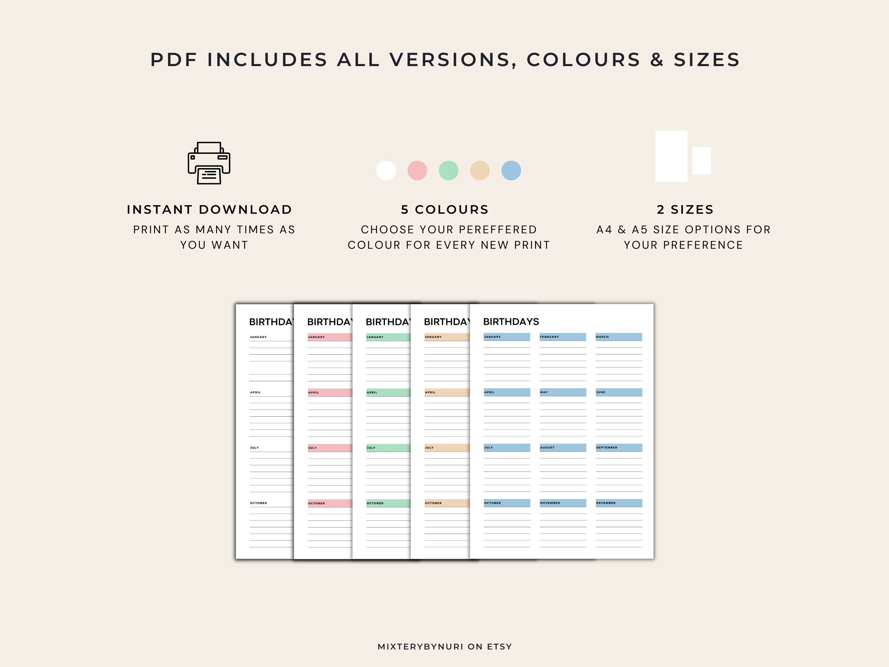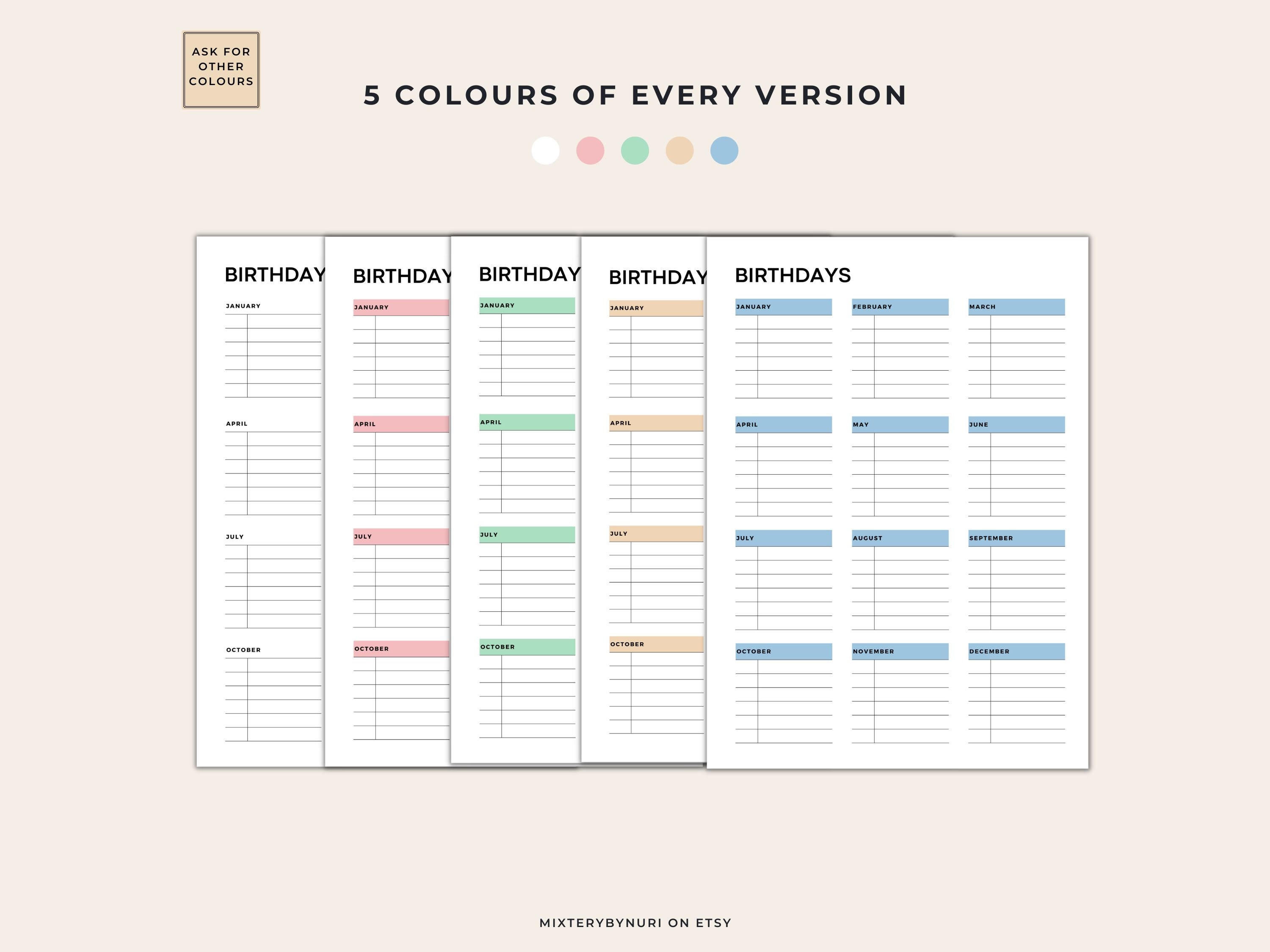Birthday Tracker Printable Template Birthday List Occasion Reminder