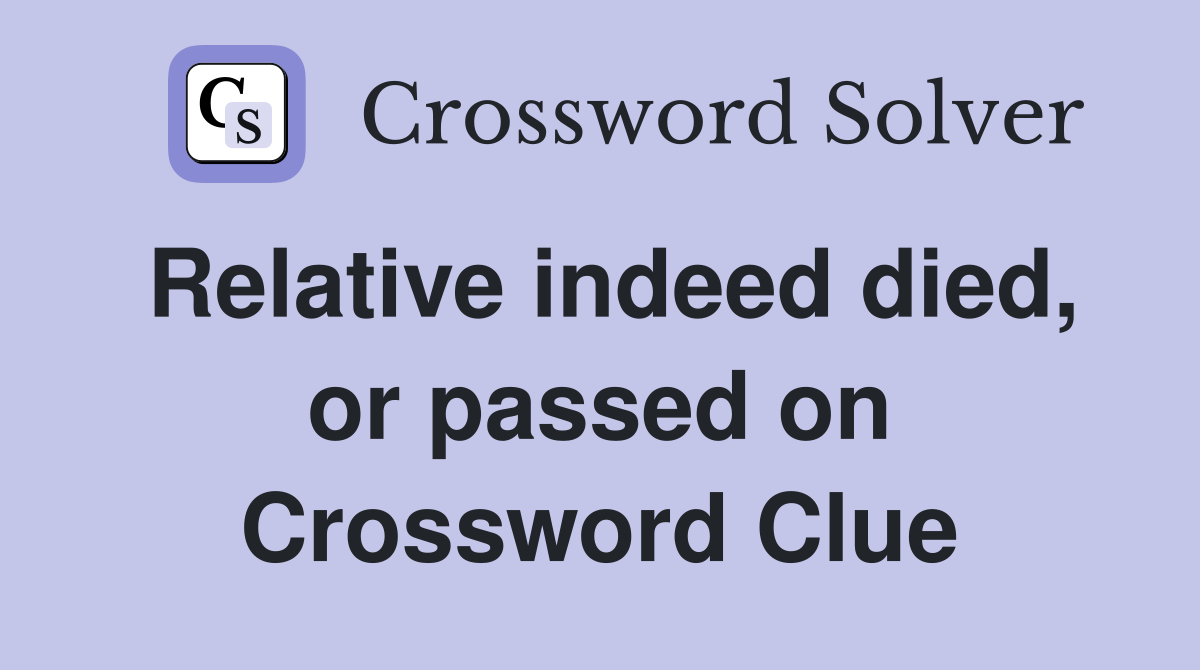 Relative indeed died or passed on Crossword Clue Answers Crossword
