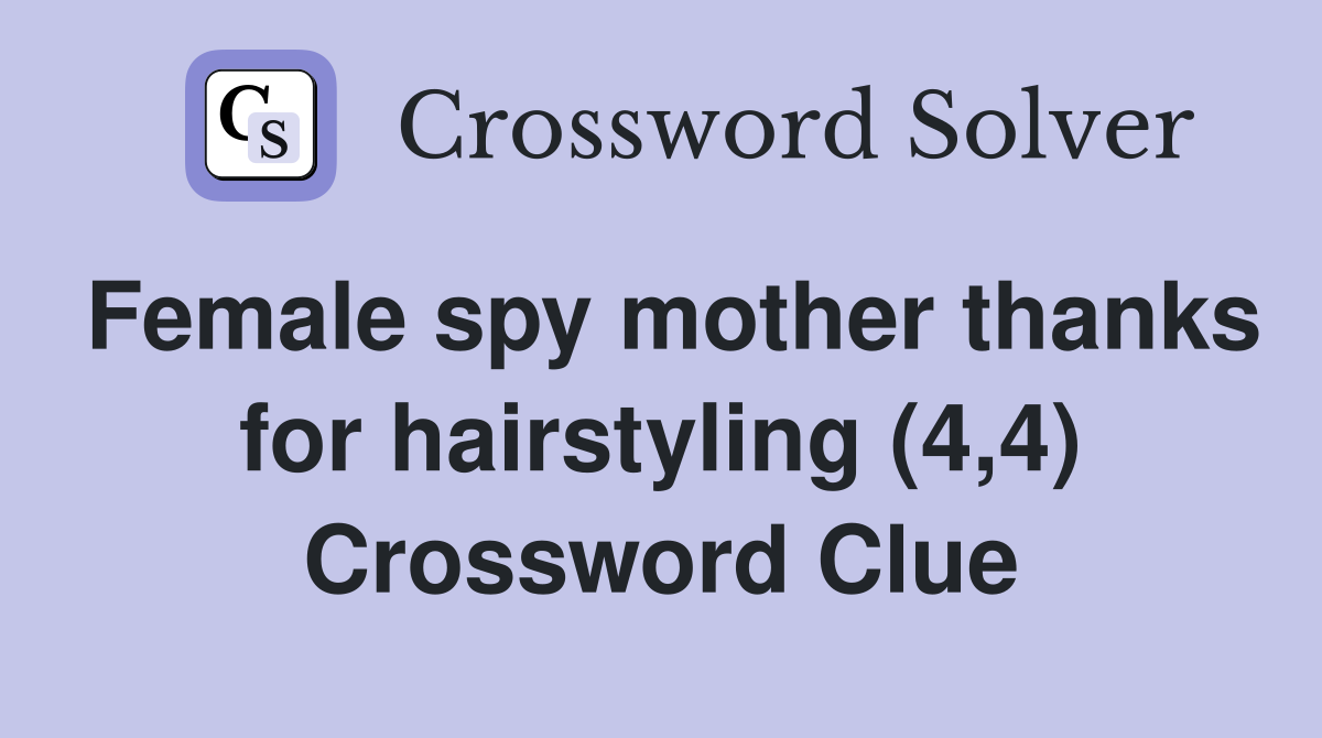 Female spy mother thanks for hairstyling (4 4) Crossword Clue Answers