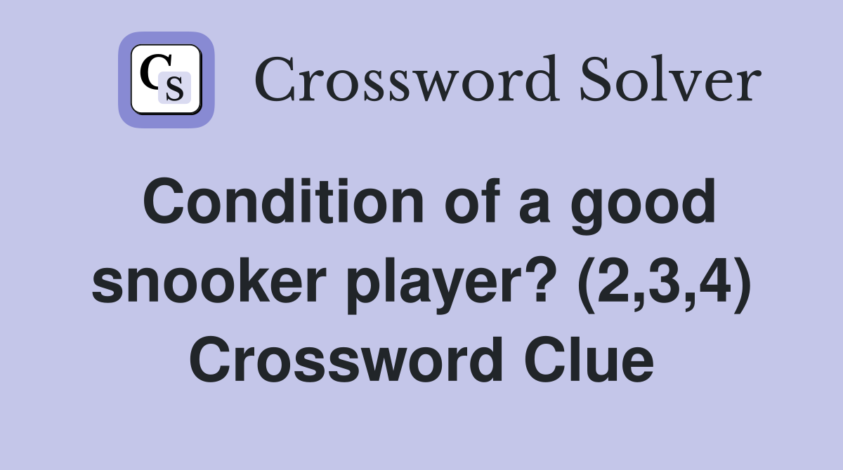 Condition of a good snooker player? (2 3 4) Crossword Clue Answers