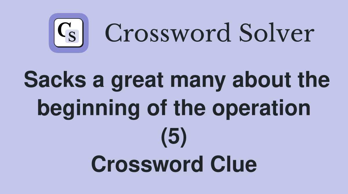 Sacks a great many about the beginning of the operation (5) Crossword