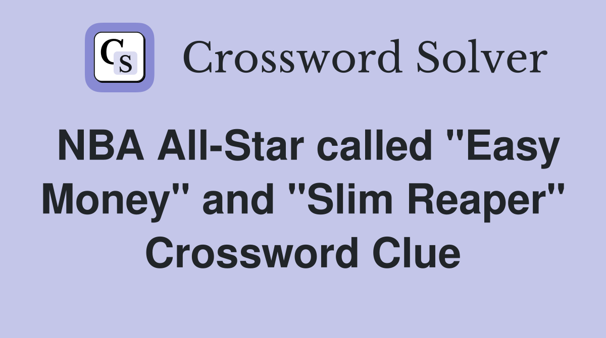 NBA All Star called quot Easy Money quot and quot Slim Reaper quot Crossword Clue